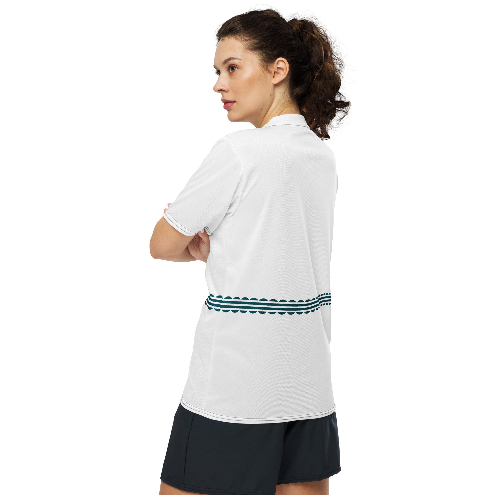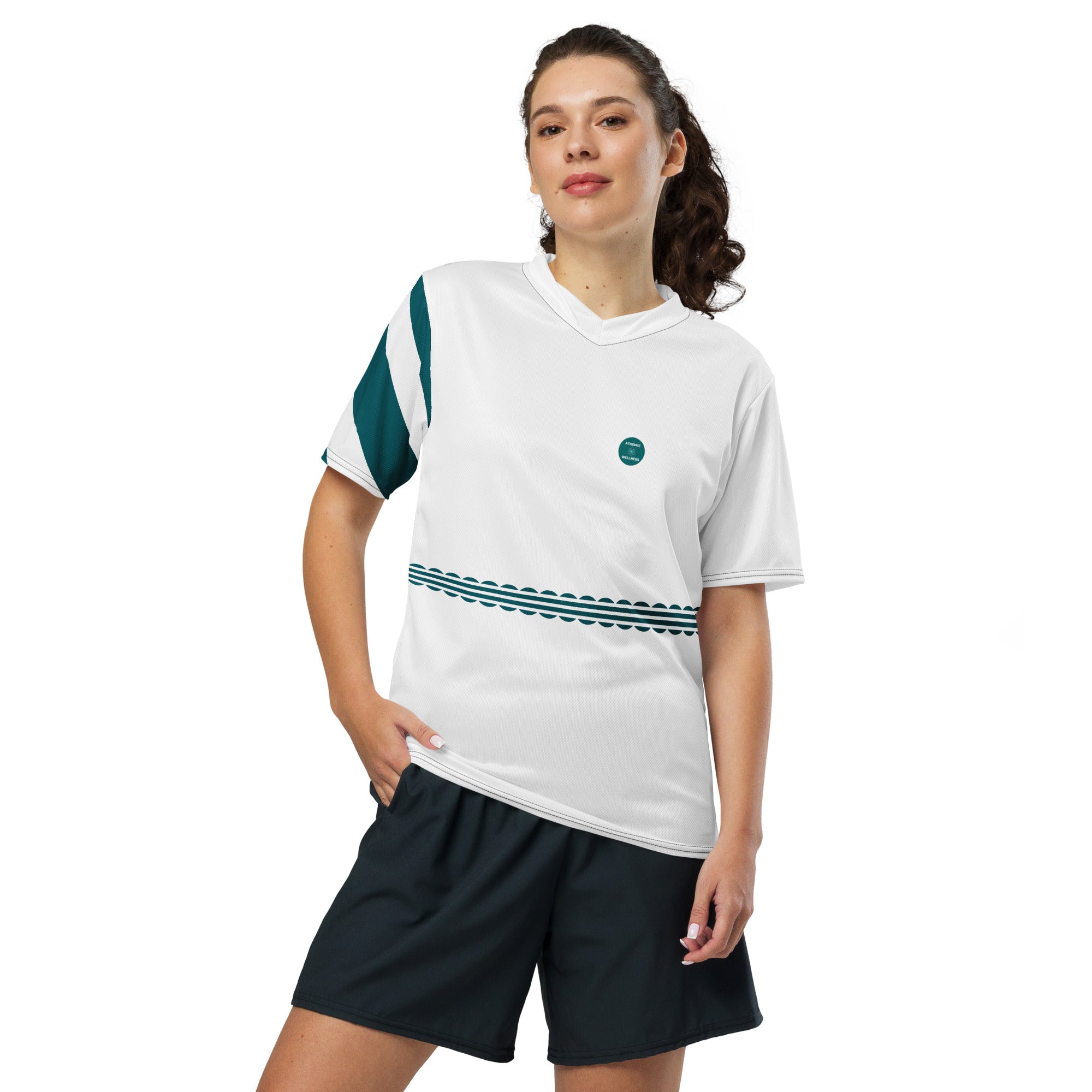 Vous cherchez le maillot de sport parfait ? Nous avons ce qu'il vous faut : fabriqué à 100 % en tissu de polyester recyclé, ce haut est respirant et évacue l'humidité, et est doté d'un col en V à double épaisseur qui crée un look Premium.