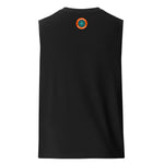 Débardeur athlétique imprimé atom noir sans manches avec logo Athomic Wellness au dos