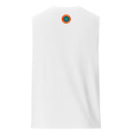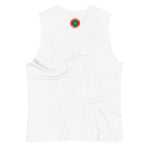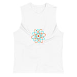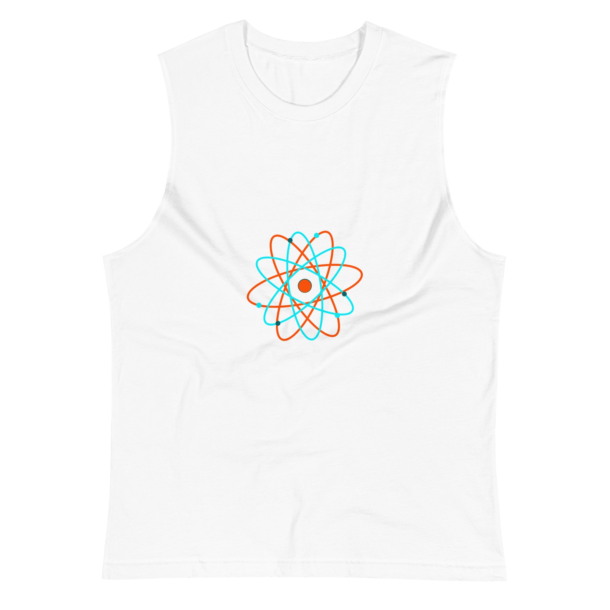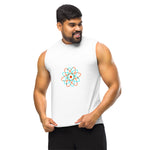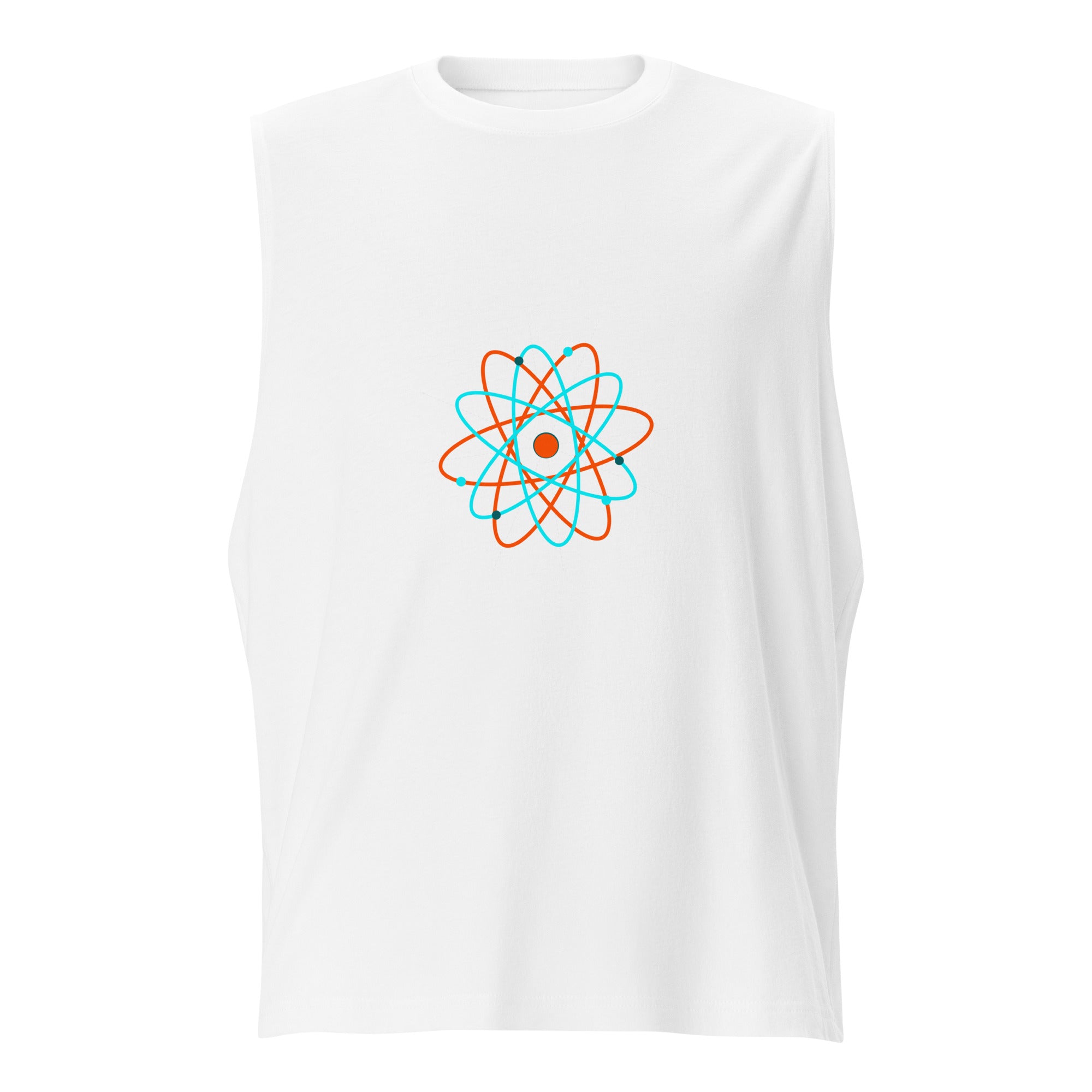 Débardeur homme blanc motif coloré avec design atomique au centre par Athomic Wellness