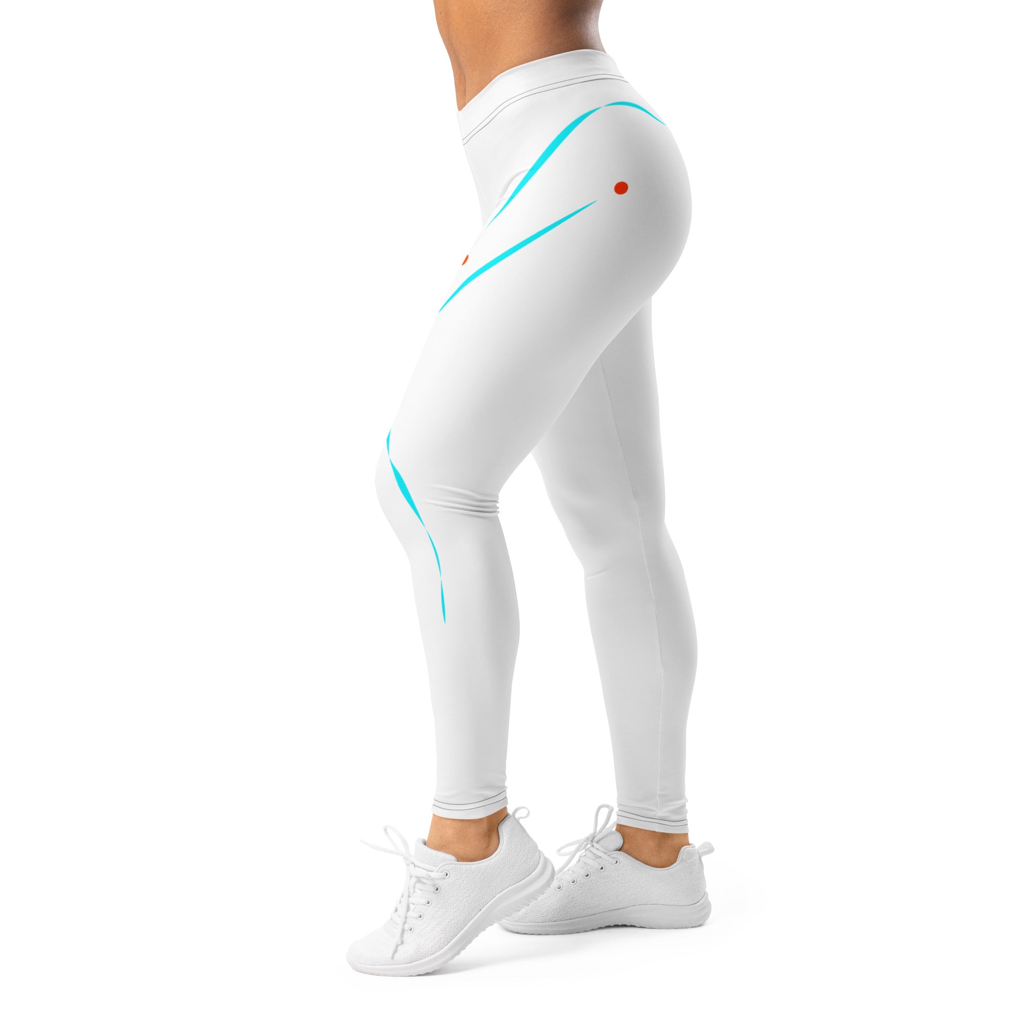 Leggings Athomic Motion Aqua Spark blanc avec motifs bleu aqua et points orange pour femmes