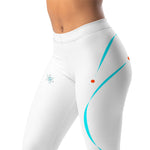 Leggings Athomic Motion Aqua Spark blancs avec motifs bleus et orange pour un style sportif élégant