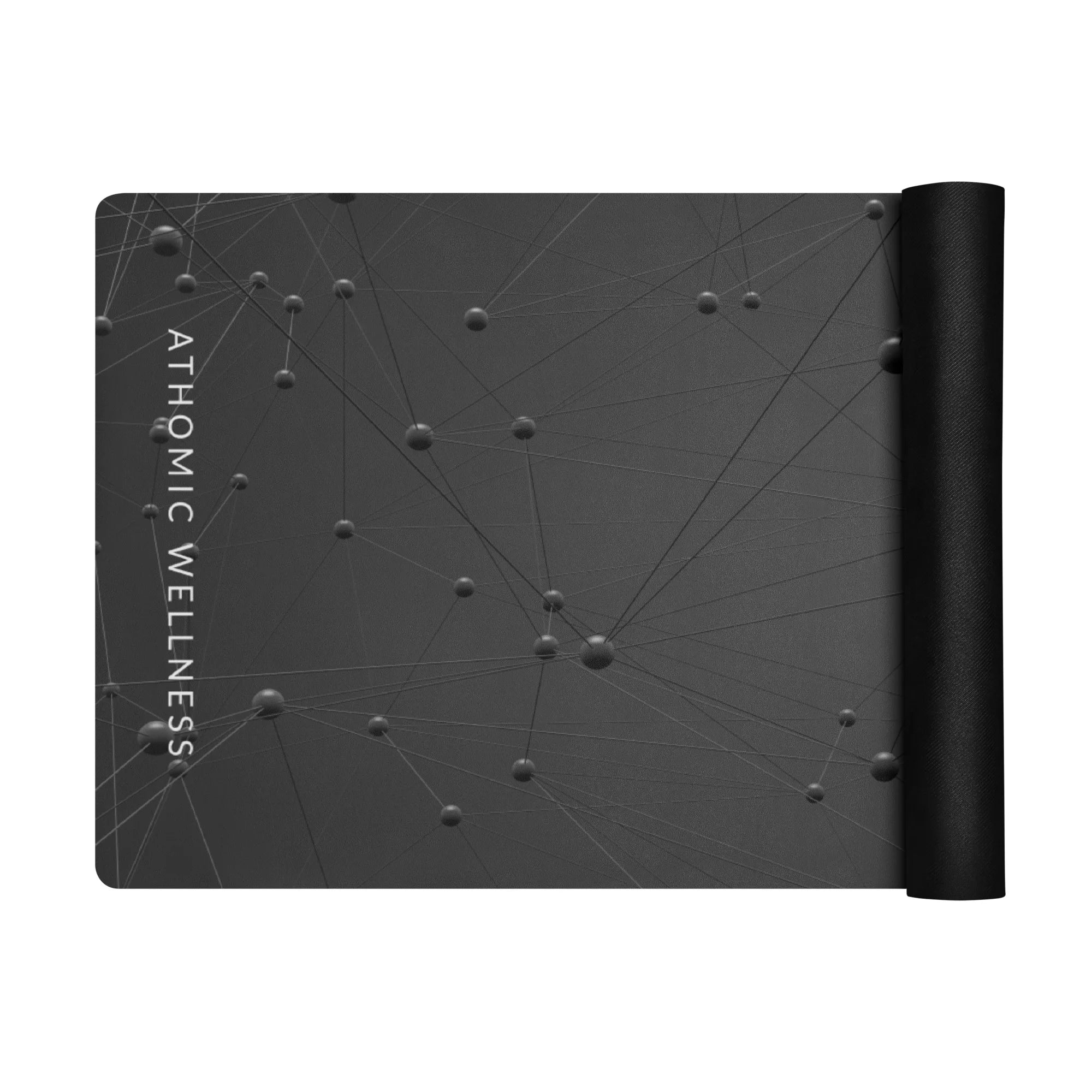 Un tapis de yoga noir élégant inspiré de l’invisible « grille quantique ». Conçu pour l’ancrage et la concentration, il allie stabilité, sobriété et énergie Athomic Wellness ⚛️.